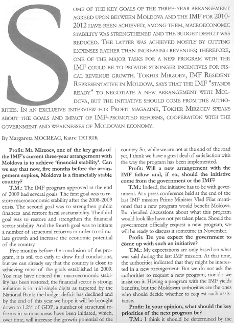 Interview with Tokhir Mirzoev, IMF Resident Representative in Moldova